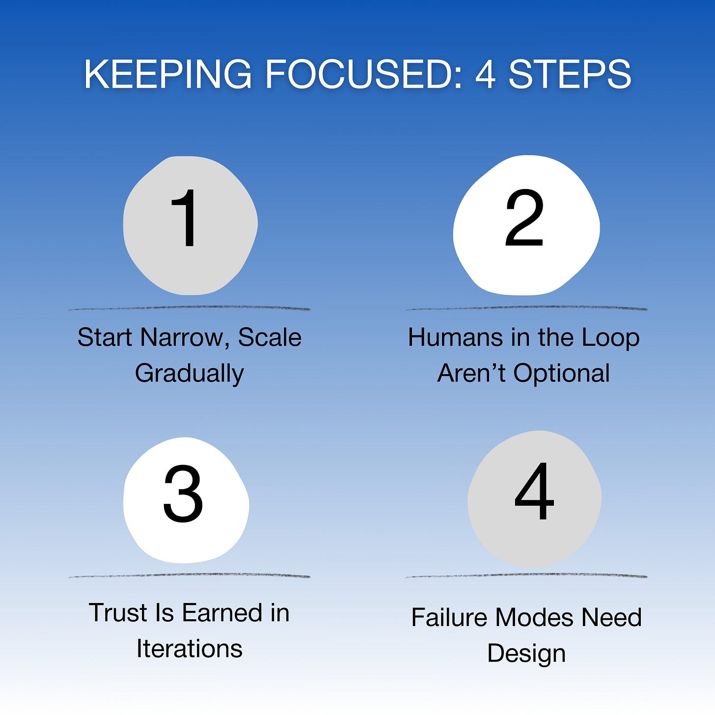 Observability is critical: You can’t improve what you can’t measure. Successful deployments instrument everything decision paths, latency, user satisfaction, override rates.